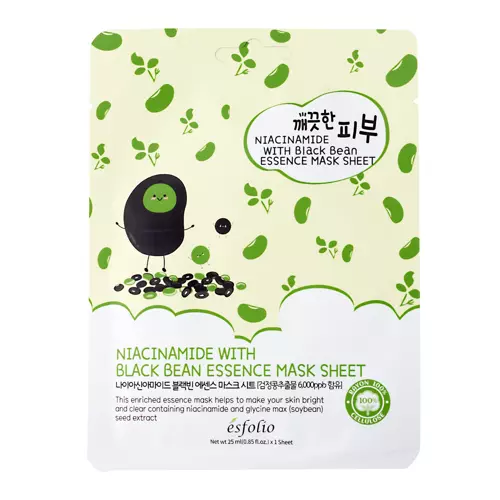 Esfolio - Pure Skin Niacinamide Black Bean Essence Mask Sheet - Textilní maska s niacinamidem - 25 ml