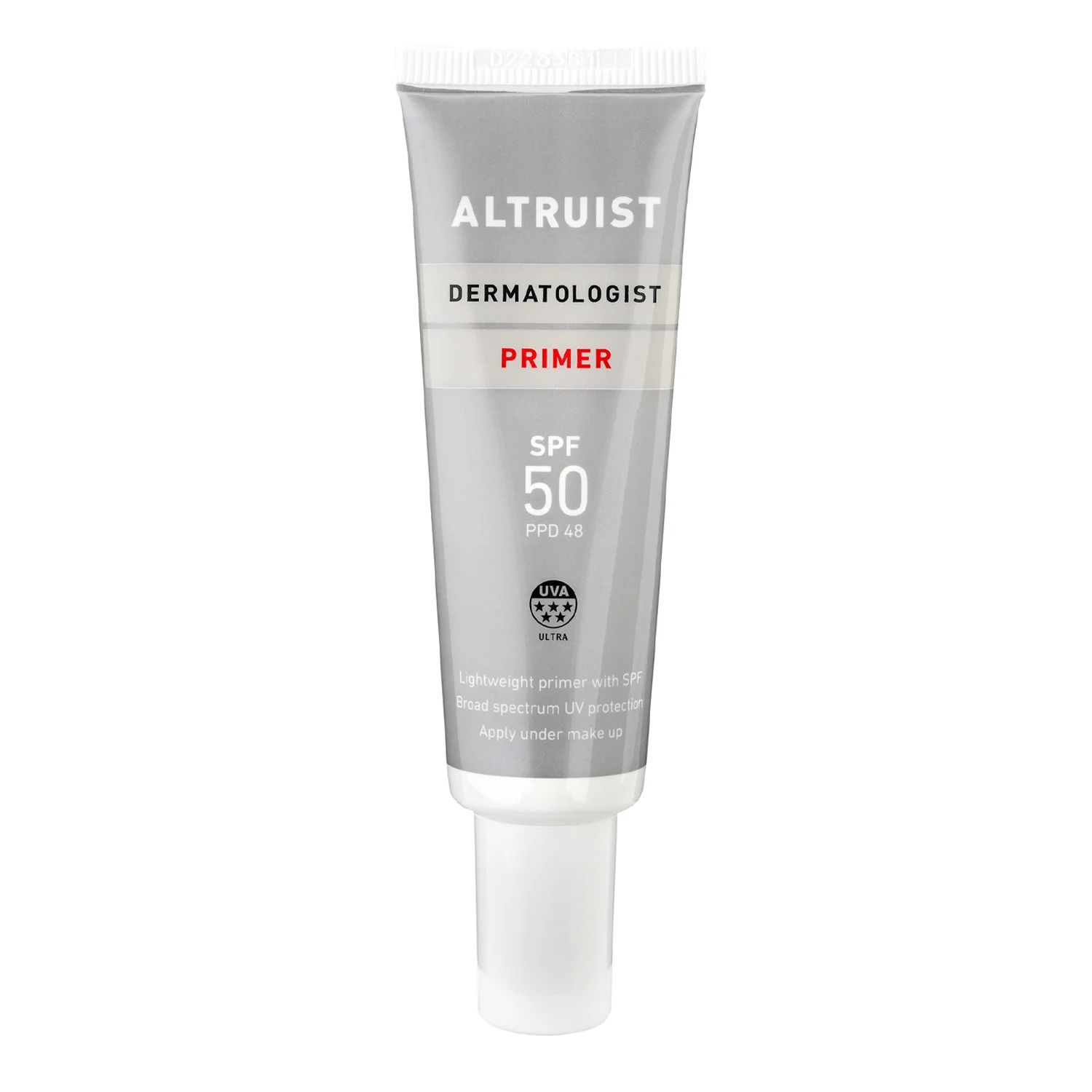 Altruist - Sunscreen Primer SPF50 - báze pod make-up, která poskytuje ochranu před slunečními paprsky. Prodlužuje výdrž make-upu, minimalizuje výskyt jemných vrásek a vyrovnává strukturu pleti. Lehké složení se rychle vstřebává a nezanechává lepivý film. Produkt neobsahuje žádné oleje ani parfémy, a proto je vhodný pro všechny typy pleti, včetně citlivé se sklonem k ucpávání. Složení obsahuje vysoce kvalitní chemické filtry, které pomáhají chránit před UV zářením. Zpomalují tak proces stárnutí pleti a snižují riziko vzniku rakoviny.