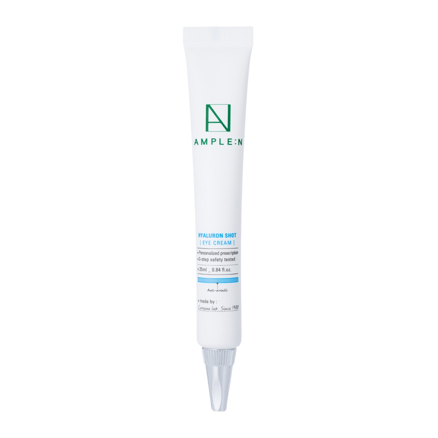 AMPLE:N - Hyaluron Shot Eye Cream je krém určený k péči o pleť kolem očí. Trehalóza obsažená ve složení kosmetického přípravku pomáhá udržovat odpovídající úroveň hydratace pokožky. Adenosin zmírňuje viditelnost mimických vrásek, který omezuje kontrakci svalových vláken, zase zvyšuje pevnost a pružnost pokožky. Zatímco ceramid NP posiluje hydrolipidovou bariéru a obnovuje ji a kyselina hyaluronová zklidňuje zánět a podporuje hydratační účinek krému. Přídavek extraktu z kaviáru a lanýžů vyživuje a regeneruje pleť.