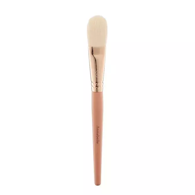 Annabelle Minerals - štěteček z měkkých syntetických štětin, zploštělý do tvaru jazyka, určený k aplikaci make-upu. Umožňuje nanášet přípravek na těžko přístupná místa bez šmouh a skvrn