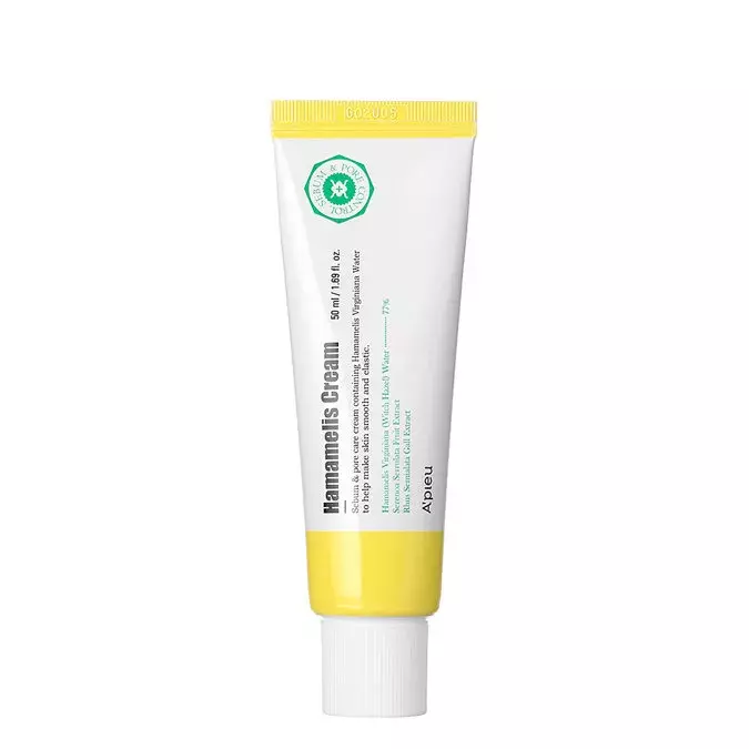 A'pieu - Hamamelis Cream - krém na obličej, krk a dekolt pro mastnou a problematickou pleť. Složení přípravku je založeno na bázi hydrolátu z listů vilínu virginského, který pečuje o pleť s nedokonalostmi: stahuje rozšířené póry a osvěžuje. V kombinaci s niacinamidem viditelně zlepšuje tón pleti a redukuje pupínky a nedokonalosti. Přípravek byl dále obohacen o arganový a sezamový olej, které zlepšují přirozenou funkci hydrolipidové bariéry a zabraňují ztrátě vody z pokožky. Pravidelné používání krému může být cenným doplňkem každodenní péče o pleť.