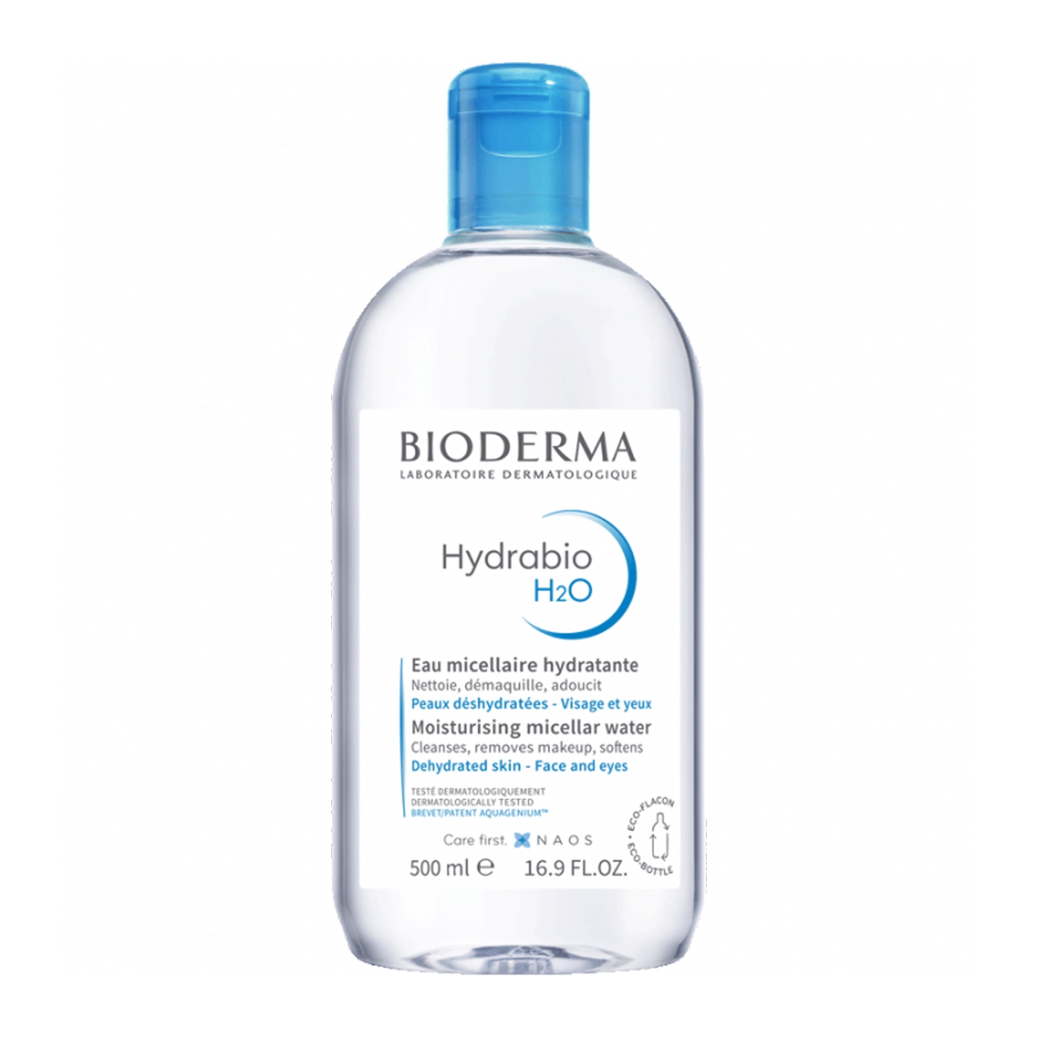 Bioderma - Hydrabio H2O - odličovací micelární voda pro suchou, dehydratovanou a citlivou pleť. Obsahuje patentovanou složku Aquagenium™, která odstraňuje nečistoty bez narušení hydrolipidové bariéry pokožky, čímž zabraňuje ztrátě vlhkosti. Přípravek byl dále obohacen o cukry, niacinamid a extrakty z okurky a jablka, které hydratují a zklidňují.