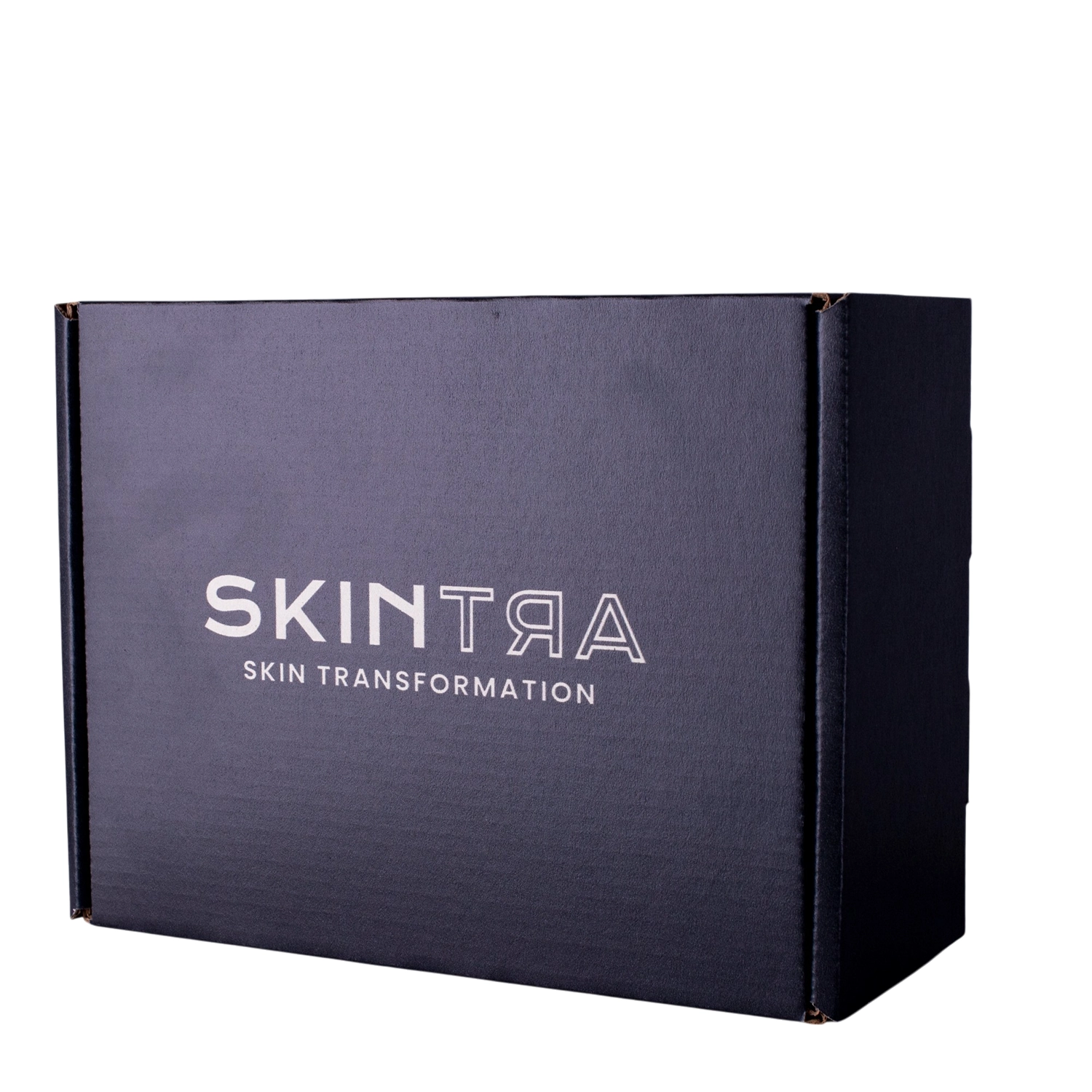 Box - SkinTra - s ohledem na dárky pro sebe nebo své blízké jsme vytvořili dárkovou krabičku s logem SkinTra. Jednoduchý a elegantní design černé dárkové krabičky s bílým logem pojme až 4 produkty naší vlastní značky SkinTra pro péči o pleť obličeje a těla. Snadno tak připravíte plně personalizovanou sadu výrobků pro profesionální dárek. Je vyrobena z ekologických, snadno recyklovatelných materiálů a jejírozměry jsou: 29.šířka 6 cm x délka 20,6 cm x výška 11,7 cm.