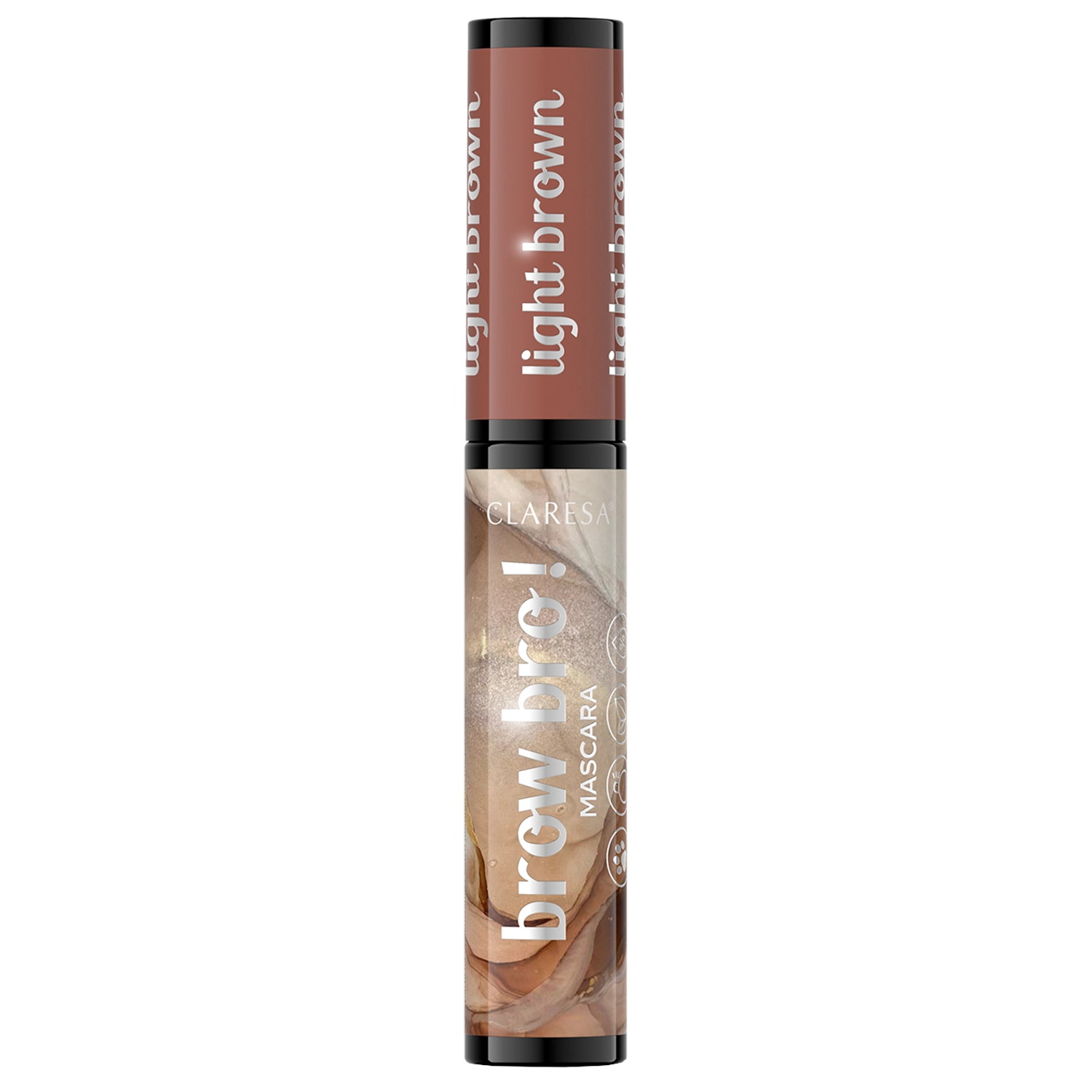 Claresa - Brow Bro! - 01 Light Brown - řasenka na obočí ve světle hnědém odstínu. Má malý precizní kartáček, neslepuje chloupky v obočí a nezanechává hrudky. Dodává obočí tmavou barvu a dlouhodobě ho fixuje. Zvýrazňuje obočí a umožňuje ho vytvarovat do požadovaného tvaru. Produkt můžete používat samostatně nebo pouze k fixaci již vykresleného obočí. Veganský produkt.