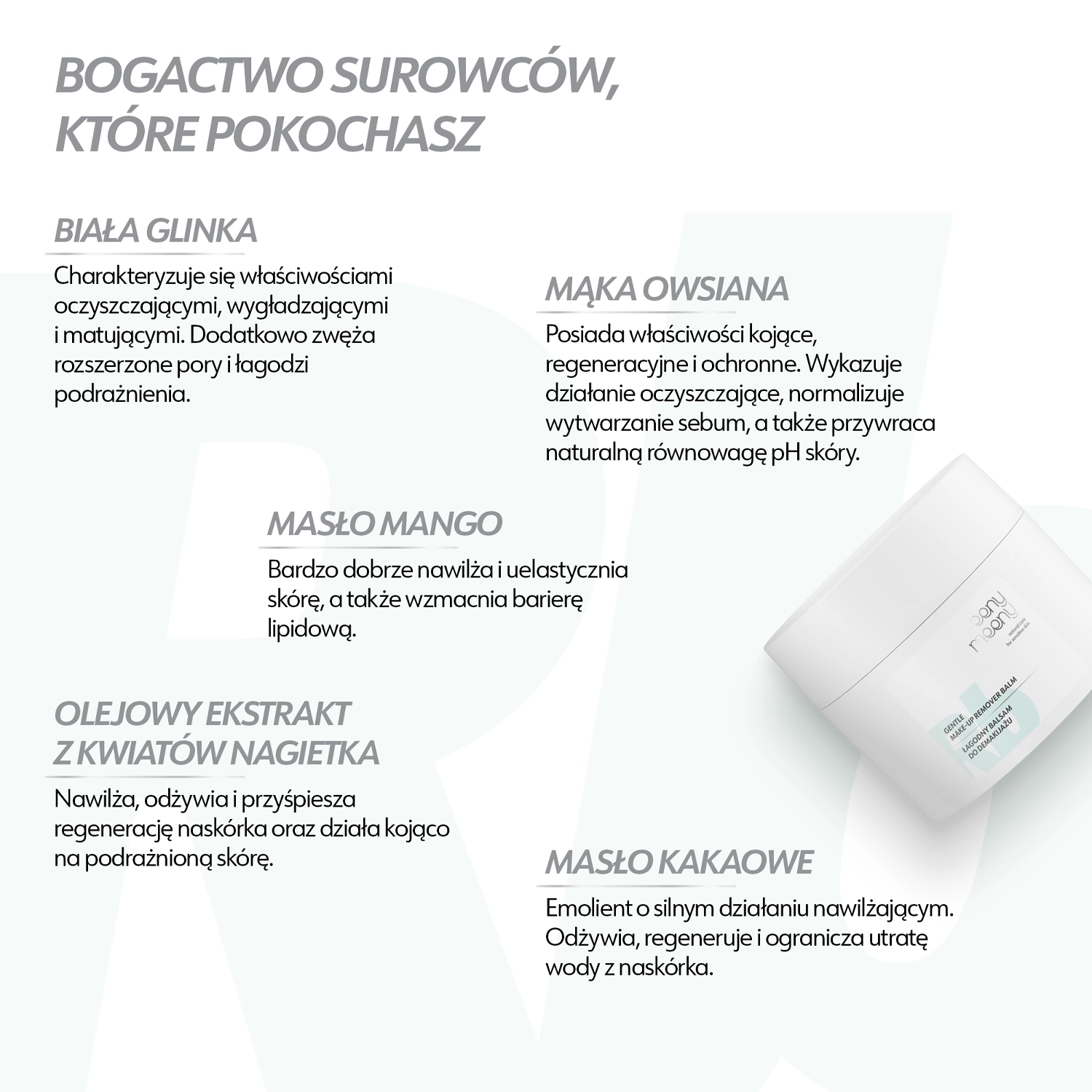 Eeny Meeny - Gentle Make-Up Remover Balm - jemný odličovací balzám s obsahem slunečnicového oleje a mangového másla, které odstraňují make-up a emulgátorů, které výrazně usnadňují smývání přípravku z pokožky obličeje. Přípravek byl obohacen o skvalan, který posiluje přirozenou hydrolipidovou bariéru a extrakt z měsíčku, který má protizánětlivé účinky a zklidňuje. Produkt na bázi 99,3 % složek přírodního původu.