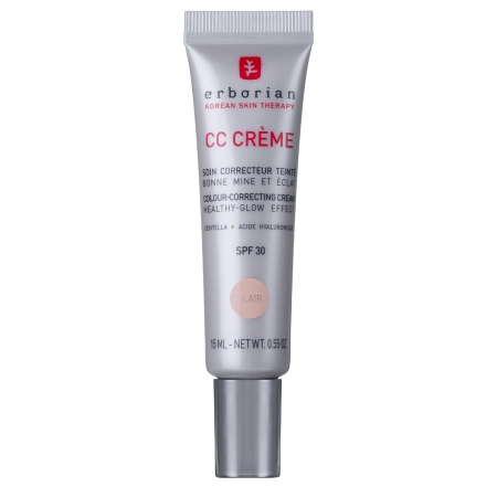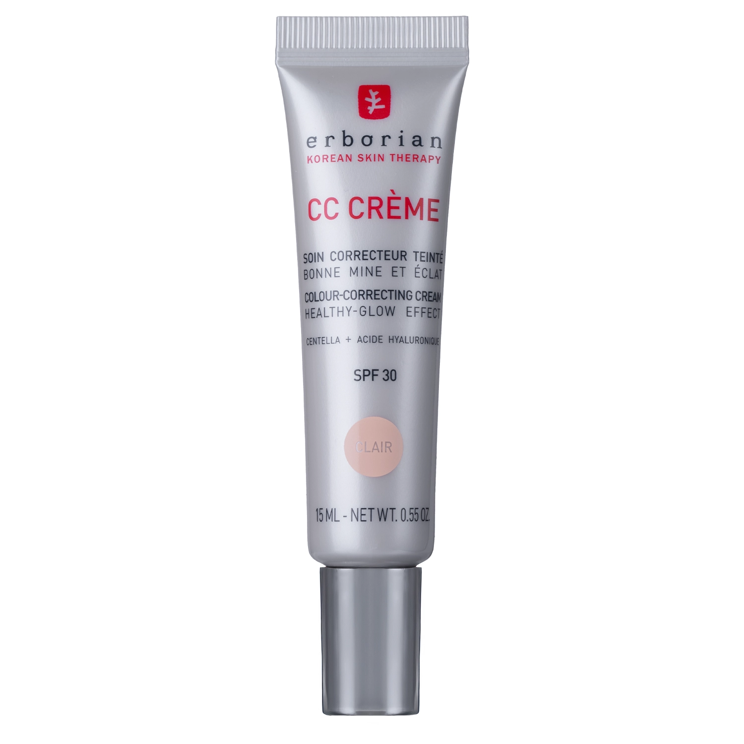 Erborian - CC Creme Centella Asiatica - Clair - CC krém na obličej s ochranou proti slunečnímu záření SPF 30. Vyrovnává tón pleti, zakrývá nedokonalosti a zarudnutí a zanechává na pleti přirozený, zářivý vzhled. Zapouzdřené pigmenty zahalují pleť krémovou, lehkou texturou, aniž by vytvářely efekt masky. Přípravek nejen jemně koriguje vzhled a vytváří přirozený vzhled make-upu, ale díky přítomnosti SPF také pomáhá chránit pleť před škodlivým UV zářením. Přídavek extraktu z listů Centella Asiatica, hyaluronátu sodného a bisabololu zase pečuje o vhodnou hydrataci, zklidňuje podráždění a navrací pleti pocit zklidnění a pohodlí. Krém je uzavřen v praktické tubě.