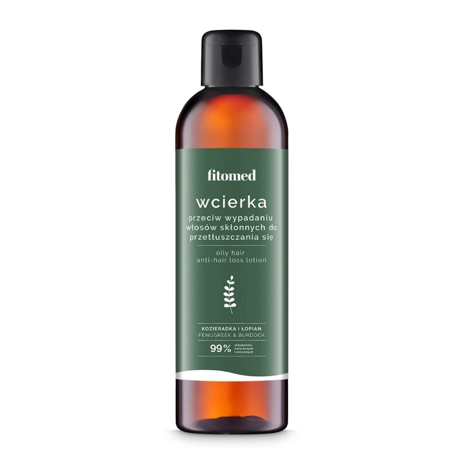 Fitomed - Tonikum proti vypadávání mastících se vlasů - vlasové tonikum pro péči o mastné vlasy se sklonem k vypadávání. Vhodné pro ženy i muže. Obsahuje extrakty z pískavice řecké seno, z přesličky rolní a z kořene lopuchu, které snižují vypadávání vlasů, stimulují růst vlasových cibulek a regulují mastnotu pokožky hlavy. Přípravek byl obohacen o kyselinu mléčnou a arginin, které hydratují. Obsažený alkohol funguje jako aktivátor, který usnadňuje pronikání účinných látek hluboko do pokožky. Veganský produkt na bázi 99 % složek přírodního původu.