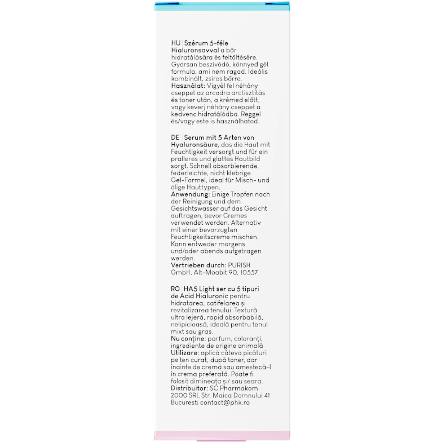 - Lehké sérum s 5 formami kyseliny hyaluronové a panthenolem