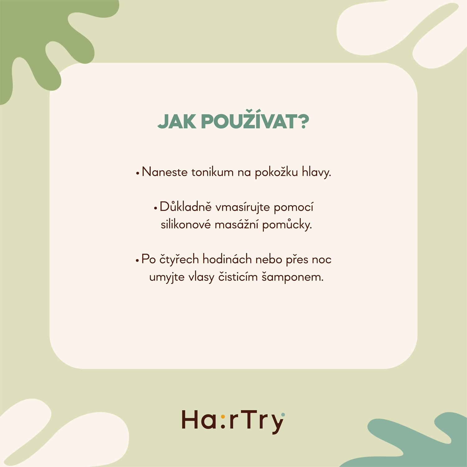 - Silikonový masážní přípravek pro normální vlasovou pokožku - lze použít několika způsoby: jako intenzivnější masážní přípravek na vlasovou pokožku, kartáč, který pomáhá účinným látkám z vašeho potěru/séra proniknout do vlasové pokožky, nebo během mytí šamponem, abyste se vyhnuli tření pokožky nehty a dále čistili vlasovou pokožku. Metoda 1 - s vtíráním: Nanášejte přípravek na pokožku hlavy po dávkách a poté ji několik minut krouživými pohyby masírujte kartáčem. Metoda 2 - se šamponem: V případě, že je pokožka hlavy umytá šamponem, použijte šampon: Šampon naneste na mokré ruce, vytvořte pěnu a naneste na mokrou pokožku hlavy. Poté jemně masírujte pokožku hlavy krouživými pohyby po dobu 1-2 minut.