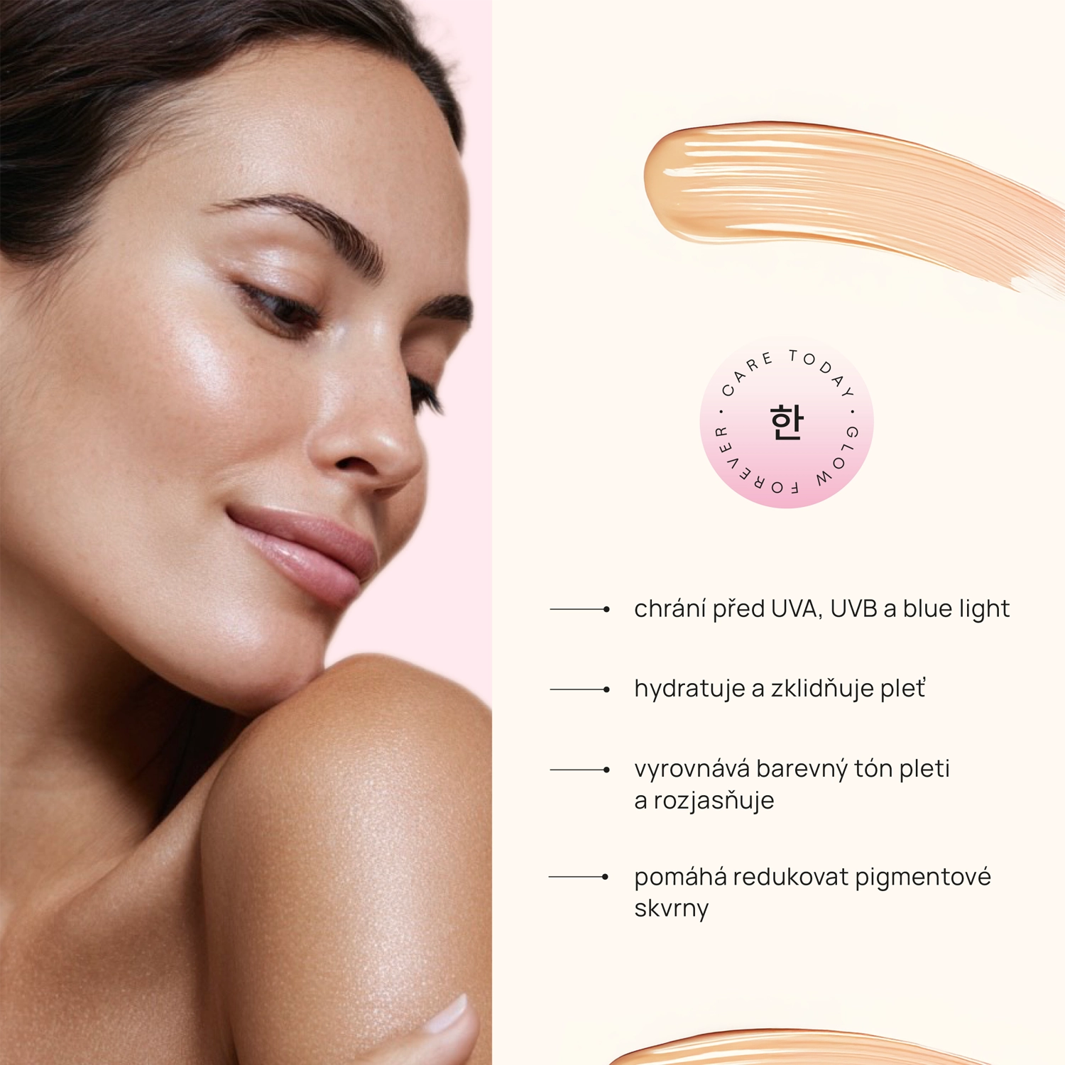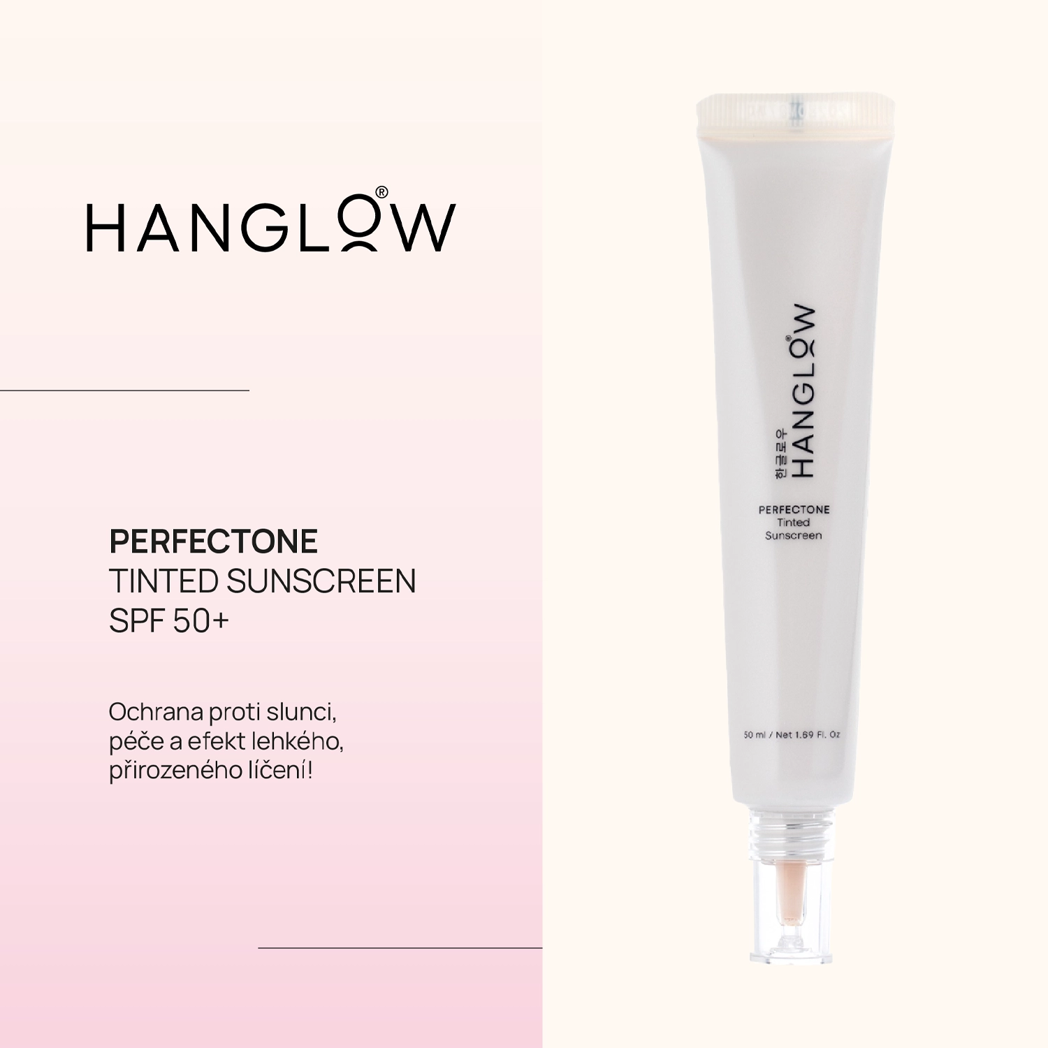 HanGlow - PerfecTone - Tinted Sunscreen SPF 50+ - 02 - krém, který v sobě spojuje tři funkce: ochranu před sluncem, péči a okamžitý zkrášlující efekt. PerfecTone je víc než klasický krém SPF - je to komplexní péče, která hydratuje, zklidňuje, pomáhá redukovat hyperpigmentaci a zároveň chrání pokožku před škodlivým UV zářením. Díky niacinamidu, rýžovému extraktu a výtažku z hlemýždího slizu intenzivně hydratuje, regeneruje a pomáhá zesvětlovat hyperpigmentaci, zatímco výtažky z toulně srdčité a pupečníku asijského přidané do složení mají protizánětlivé a zklidňující účinky. Další výhodou krému je, že díky obsahu pigmentů okamžitě dodává přirozený a lehký efekt líčení s jemným odleskem. Hebká saténová textura je prakticky balená v tubě, která zajišťuje hygienické a pohodlné použití. Přípravek nepůsobí zesvětlení pleti. Nabízí se ve dvou odstínech, přičemž odstín 02 je ideální pro světlou až střední pleť.