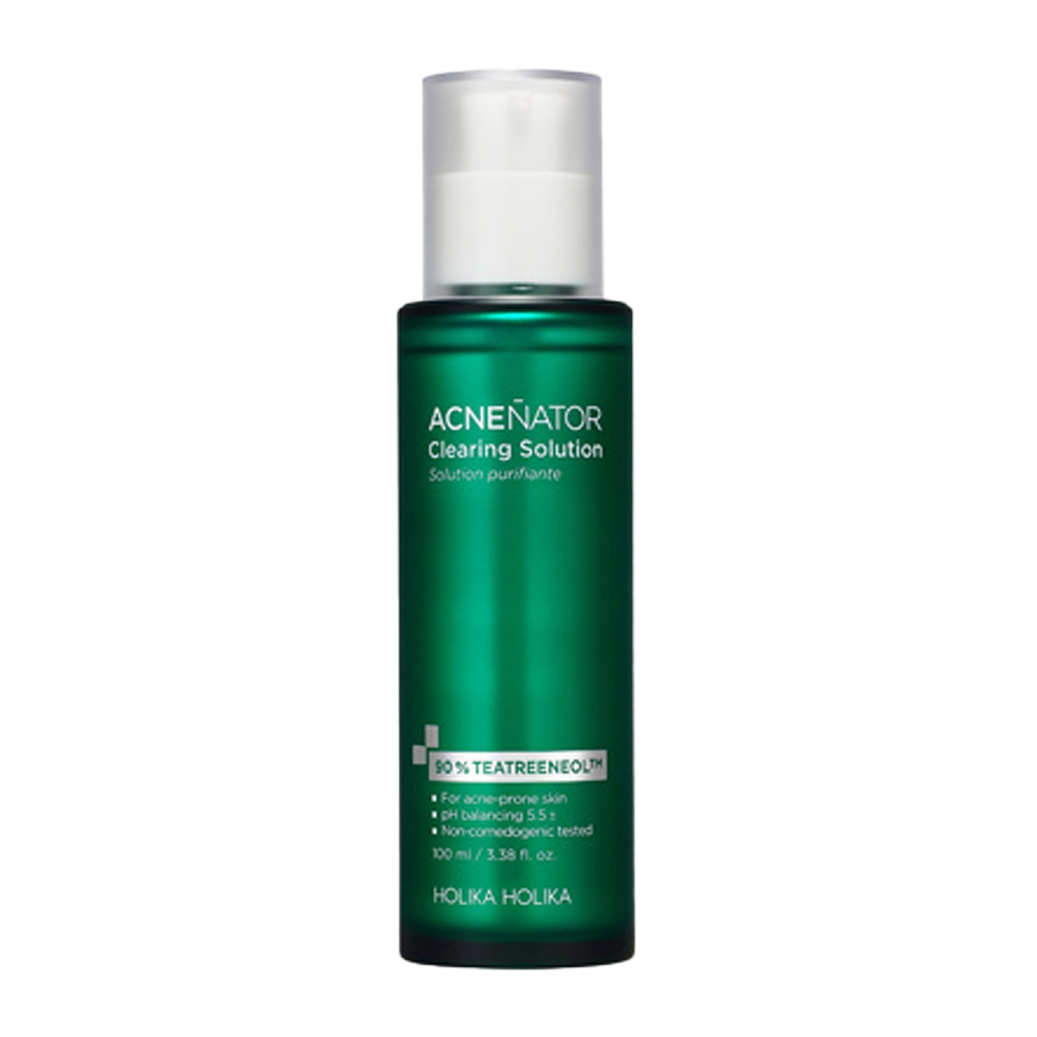 NHolika Holika - Acnenator Clearing Solution - pleťové sérum doporučené pro mastnou a problematickou pleť se sklonem k nedokonalostem. Vykazuje antibakteriální vlastnosti, podporuje hojení zánětů a redukci kožních lézí. Složení na bázi 90% Tea Treeneol™ zlepšuje vzhled pleti se sklonem k akné, zatímco kyselina LHA spolu se zinkem PCA snižují nadměrnou sekreci kožního mazu a mají antiseptický účinek. Přídavek kyseliny laktobionové zlepšuje úroveň hydratace a zajišťuje správnou rovnováhu složení, zatímco extrakt z pupečníku asijského minimalizuje záněty a stimuluje regeneraci. Sérum se rychle vstřebává a zanechává na pleti jemný chladivý pocit.