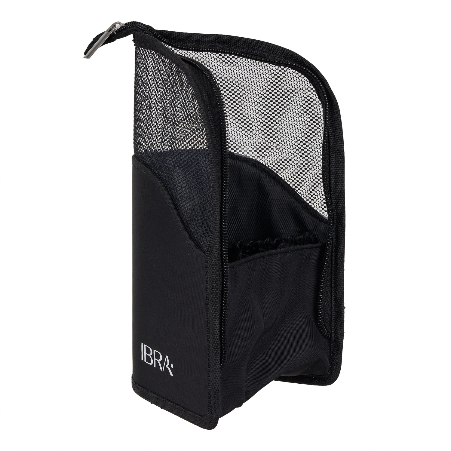 Pouzdro na štětce od Ibra Makeup - elegantní pouzdro na štětce ideální pro domácí použití i na cesty. Bylo vyrobeno z pevné síťoviny, která umožňuje rychlou kontrolu obsahu, aniž byste jej museli otevírat. Funkční výrobek je ideální také pro ukládání kosmetiky a doplňků k líčení. Organizér je opatřen zipem z nepromokavého materiálu, který zajišťuje bezpečnost uložených věcí.