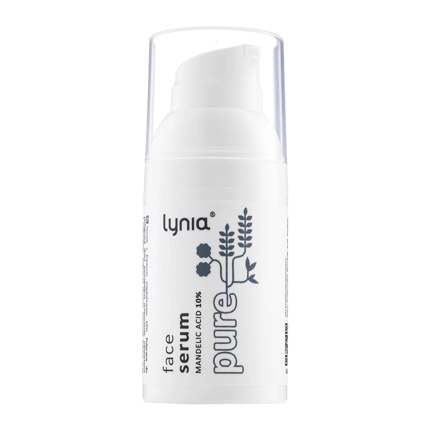 Lynia - Pure - Face Serum - Mandelic Acid - hydratační pleťové sérum. Obsahuje tyto hydratační složky: inulin a uhlohydráty: glukózu, fruktózu a celulózu. Přípravek byl dále obohacen o kyselinu mandlovou, která v koncentraci 10 % rovněž hydratuje a navíc zabraňuje množení patogenních bakterií. Pravidelné používání séra má jemné exfoliační účinky a zajišťuje tak efekt hladké pokožky.