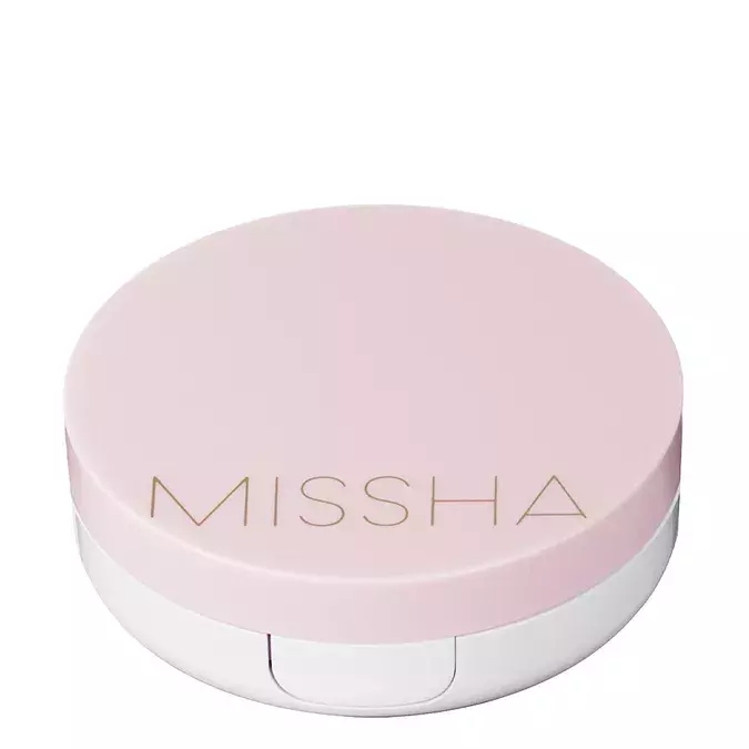 Missha - Magic Cushion Cover Lasting SPF50+/PA+++ - hydratační make-up s cushion technologií, který poskytuje lehký a přirozený finish. Obsahuje UV filtry, které chrání před slunečním zářením a extrakt z měsíčku a extrakt z eukalyptu, které mají protizánětlivé vlastnosti, hydratují a regenerují. Přípravek byl dále obohacen o niacinamid, který sjednocuje tón pleti a reguluje sekreci kožního mazu a adenosin, který působí proti vráskám. Cushion technologie s houbičkou umožňuje rychlou a pohodlnou aplikaci přípravku.