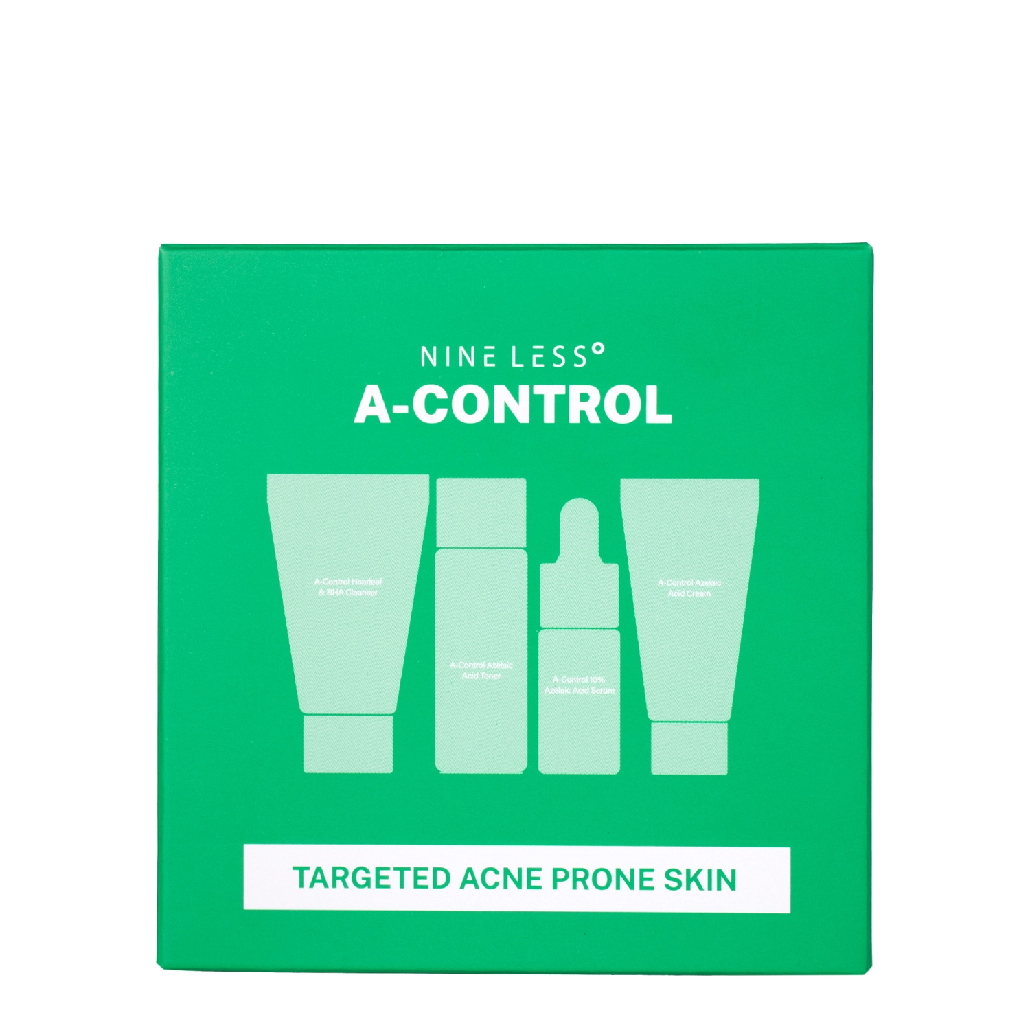 Nine Less - A-Control Mini Kit - sada 4 miniaturních produktů zaměřených svým působením na zklidnění a regeneraci citlivé pleti se sklonem k aknózním projevům. Výrobky dohromady tvoří kompletní protizánětlivou, hydratační a zklidňující péči o pleť se sklonem k akné - od čisticího po hydratační krém. Hlavní účinnou látkou řady A-Control je protizánětlivá kyselina azelaová. Sada obsahuje: