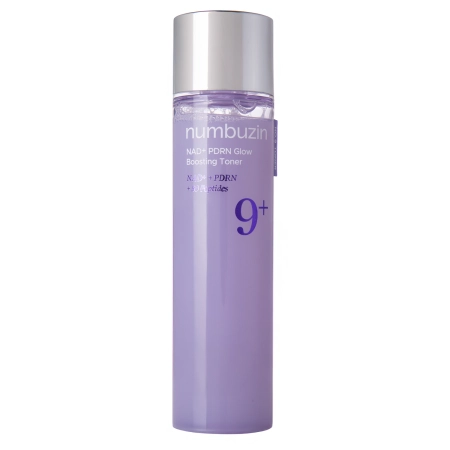 Numbuzin - No.9 NAD PDRN Glow Boosting Toner - tonikum, který zanechává zářivý efekt vypnuté pleti. Obsahuje PDRN, koenzym NAD a komplex 50 peptidů. Jejich kombinace má nejen antioxidační účinek, a tím zpomaluje proces stárnutí pleti, ale také vyhlazuje jemné linky a vrásky, viditelně zvyšuje pevnost epidermis a stimuluje její regeneraci. Přídavek ceramidu NP pečuje o epidermální bariéru, zvyšuje její odolnost vůči vnějším vlivům a kolagen hydratuje. Tonikum zanechává efekt glass skin- dokonale rozjasněnou, vypnutou a opticky hladkou pokožku. Přípravek je úspěšný v péči o mdlou, nevýraznou, ale i zralou nebo ochablou pleť.