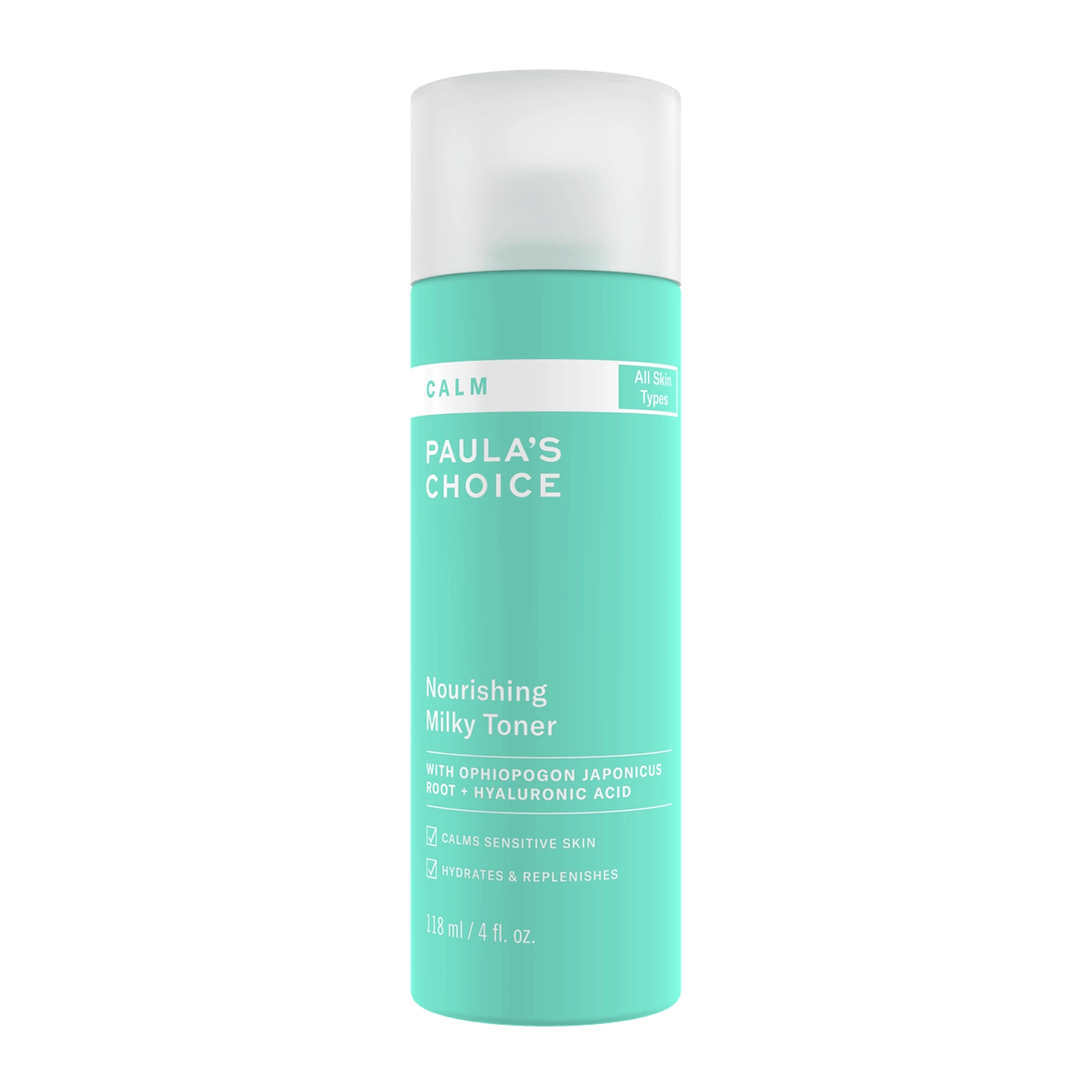 Paula's Choice - Calm Nourishing Milky Toner - pleťové tonikum s tekutou mléčnou konzistencí, které obaluje pokožku, tonizuje, hydratuje, zmírňuje podráždění, redukuje zarudnutí a minimalizuje projevy růžovky (rosacey). Obsahuje panthenol a allantoin, které zklidňují a zlepšují elasticitu pleti, hyaluronát sodný, který zlepšuje úroveň hydratace a extrakty z kořene proskurníku a z kořene sedoulku japonského (Ophiopogon Japonicus), které změkčují a chrání. Tonikum posiluje bariéru pokožky a kožní mikrobiom a zvyšuje odolnost pokožky vůči vnějším vlivům.