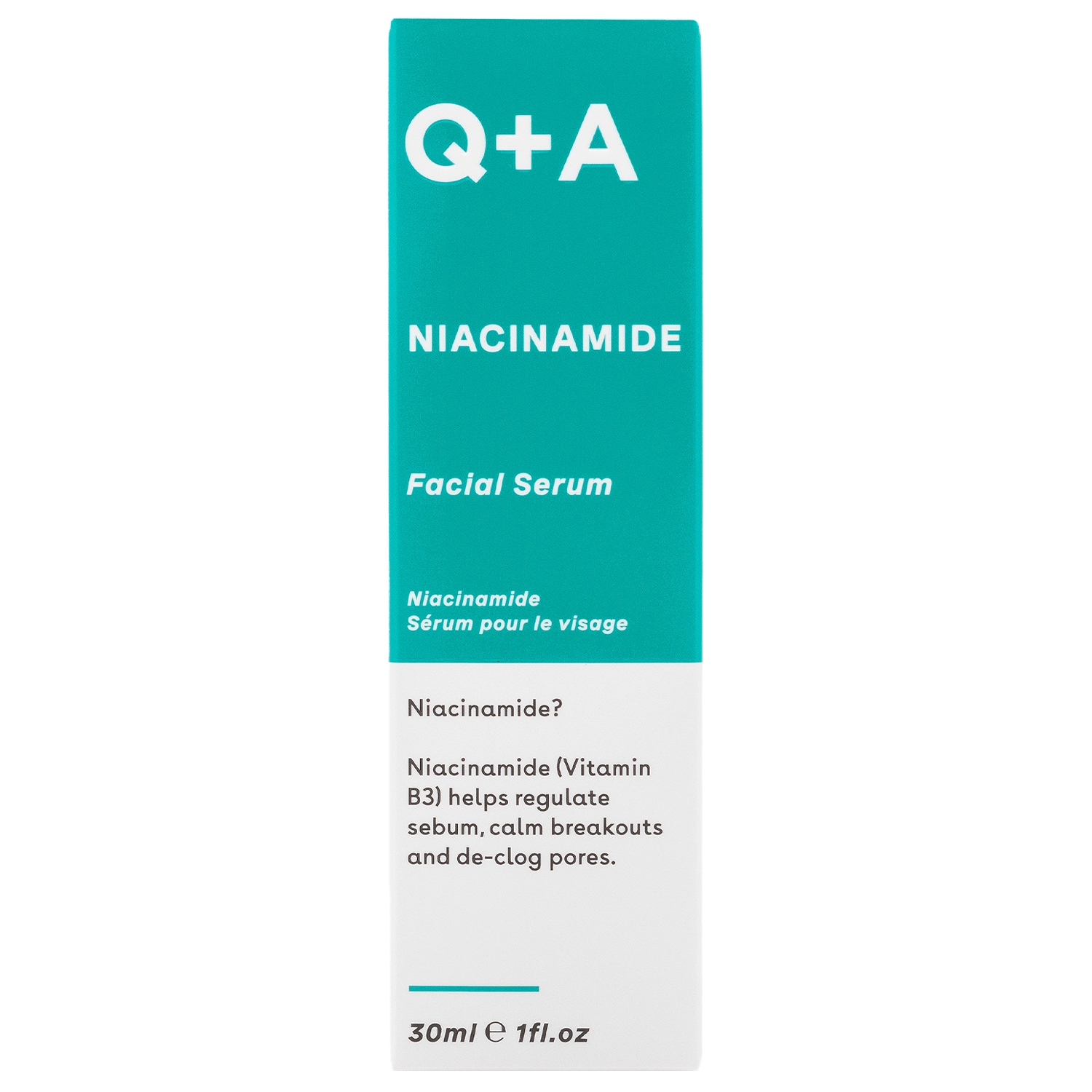 Q+A - Niacinamide Facial Serum - vyrovnávací pleťové sérum s niacinamidem, který rozjasňuje a reguluje sekreci kožního mazu. Přípravek byl obohacen o hyaluronát sodný a allantoin, které zajišťují dostatečnou úroveň hydratace a zklidňuje podráždění a extrakt z aloe vera, který spolu s extraktem z Goji regeneruje, působí proti stárnutí a vyhlazuje. Veganský produkt.