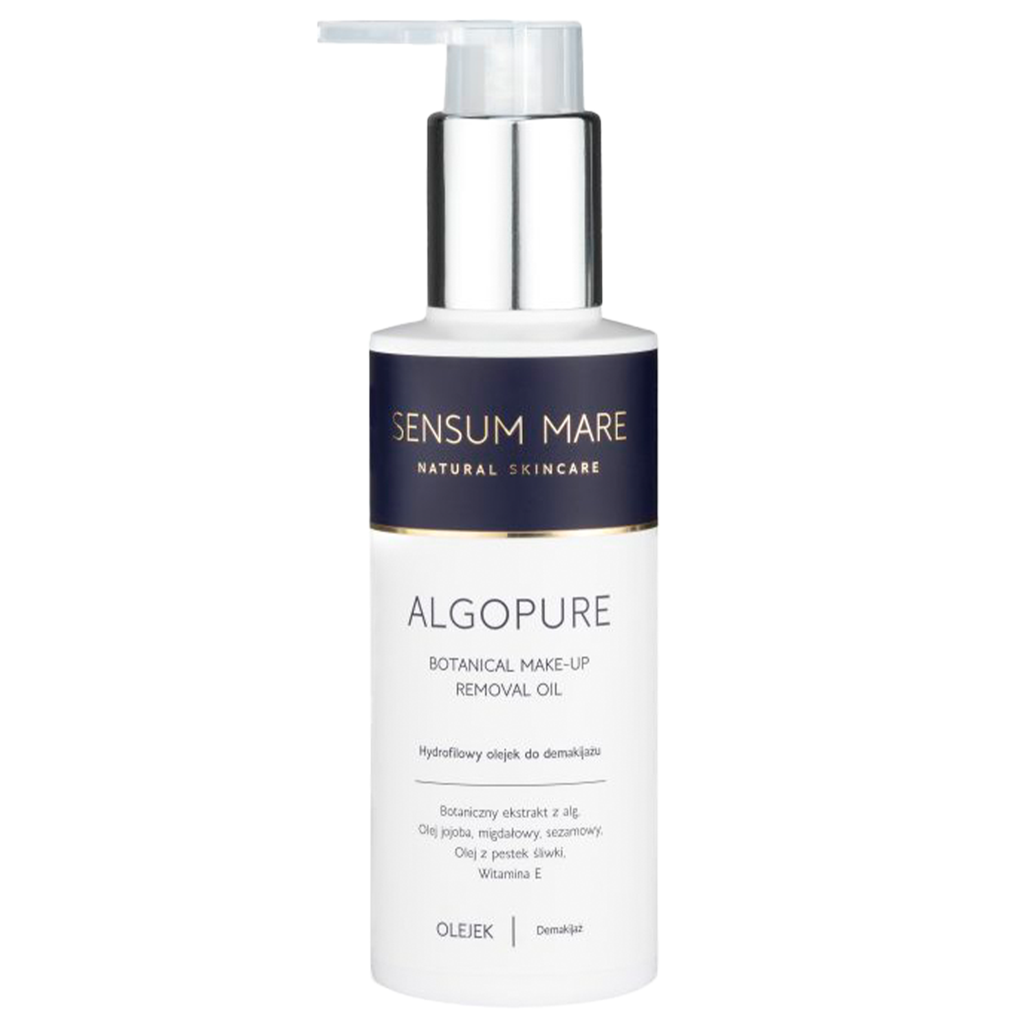 Sensum Mare - Algopure - Botanical Make-up Removal Oil - hydrofilní olej určený pro 1. fázi čištění obličeje. Obsahuje řadu vyživujících olejů a při kontaktu s vodou se mění na hedvábné mléko, které účinně odstraňuje zbytky make-upu, SPF přípravků a nečistot. Nezanechává mastný film. Obsahuje olejový komplex Polyplant Oily Seaweed získaný z extraktů z mořských řas; zpevňuje a zklidňuje a sezamový olej, olej ze švestkových jader, jojobový a mandlový olej, které vyživují, zlepšují elasticitu pleti a regenerují. Přípravek změkčuje, vyhlazuje, minimalizuje podráždění a zklidňuje. Veganský produkt na bázi 98,5 % složek přírodního původu.