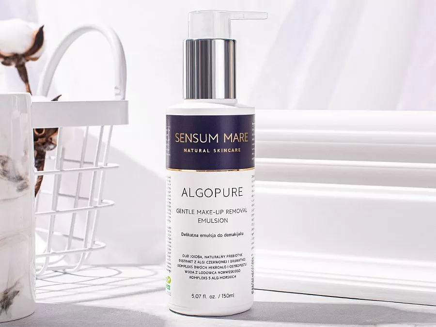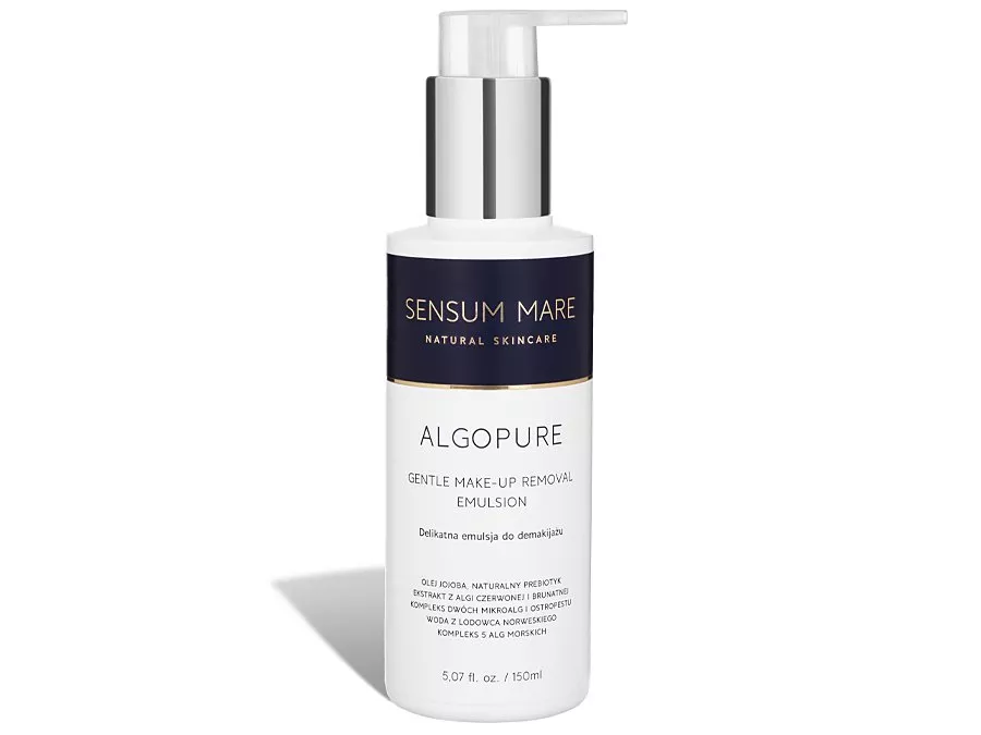 Sensum Mare - Algopure - Gentle Make-up Removal Emulsion - Jemná odličovací emulze - na bázi kombinaci olejů, které účinně rozpouštějí i voděodolný make-up. V přípravku obsažený komplex 5 mořských řas zmírňuje podráždění a zklidňuje a prebiotikum ve formě inulinu posiluje přirozený mikrobiom pokožky. Složky, které jsou bohaté na vitamíny a minerální soli jako voda z norského ledovce a komplex mořských mikrořas a ostropestřce mariánského posilují pokožku a zajišťují dostatečnou úroveň hydratace. Produkt je vhodný pro všechny typy pleti, včetně citlivé.