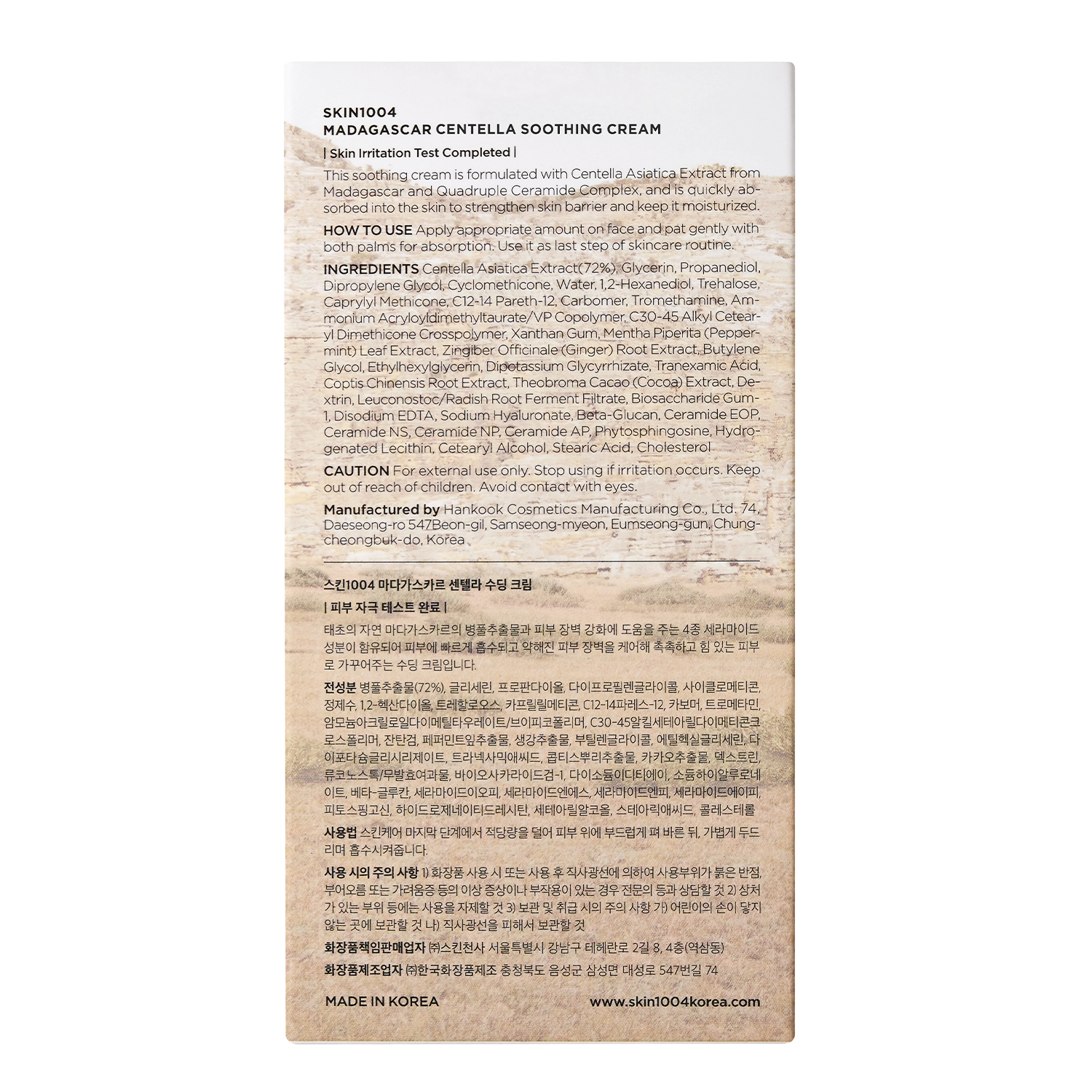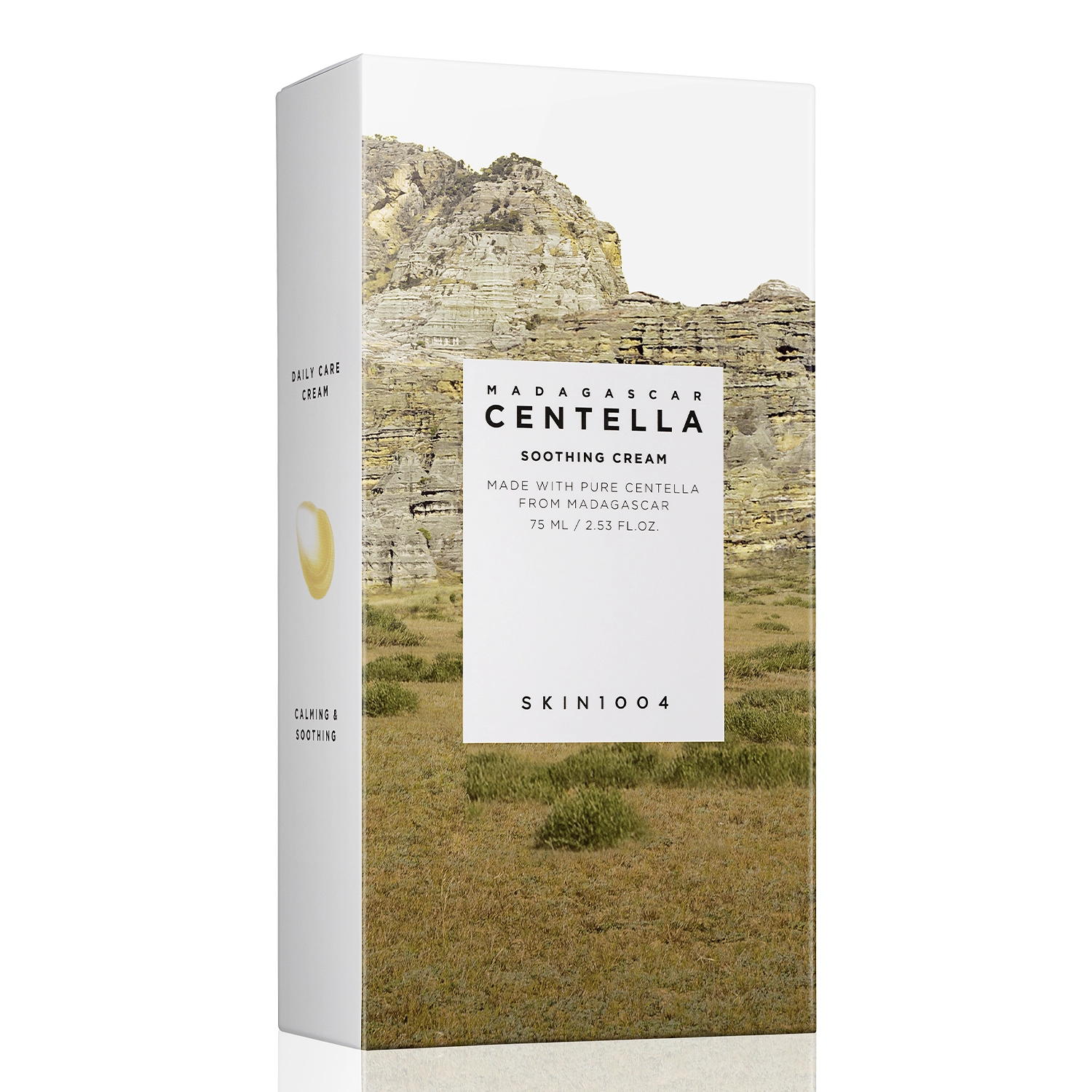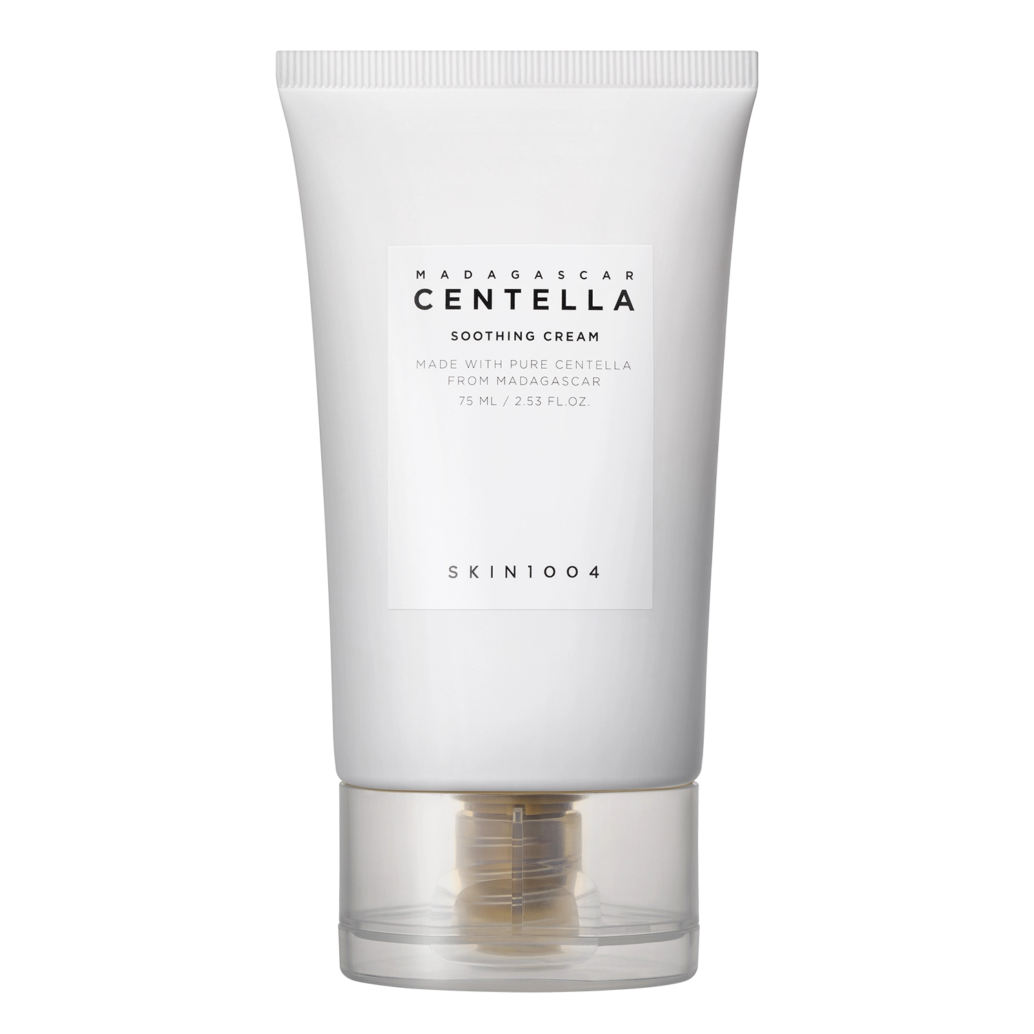 SKIN1004 - Madagascar - Centella Soothing Cream - krém s bohatou konzistencí, který obaluje pokožku a zklidňuje podráždění. Vhodný pro všechny typy pleti, zejména suchou, podrážděnou a s narušenou hydrolipidovou bariérou. Obsahuje extrakt z pupečníku asijského, který zklidňuje a regeneruje, trehalózu, která má antioxidační účinky a zadržuje vodu v pokožce a beta-glukan, který zlepšuje elasticitu pleti a minimalizuje podráždění. Přípravek byl dále obohacen o složky posilující a obnovující hydrolipidovou bariéru: ceramidy, cholesterol a fytosfingosin, které mají opravné účinky, regenerují, vyživují a zklidňují.