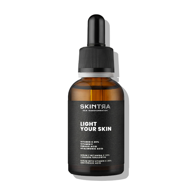 - 20 % vitamínu C ve formě kyseliny L-askorbové - aktivní složka, která zesvětluje vzniklé pigmentové skvrny, sjednocuje tón pleti a projasňuje našedlou pleť bez lesku; kyselina askorbová navíc bojuje proti volným radikálům, zpomaluje proces stárnutí a stimuluje produkci kolagenu a elastinu, zpevňuje a zlepšuje elasticitu pleti, má antioxidační vlastnosti, které předchází vzniku černých teček. Urychlují proces regenerace u pleti s nedokonalostmi a zmírňují projevy slunečního erytému (zánětlivá reakce po spálení sluncem) a spáleniny způsobené UVB zářením