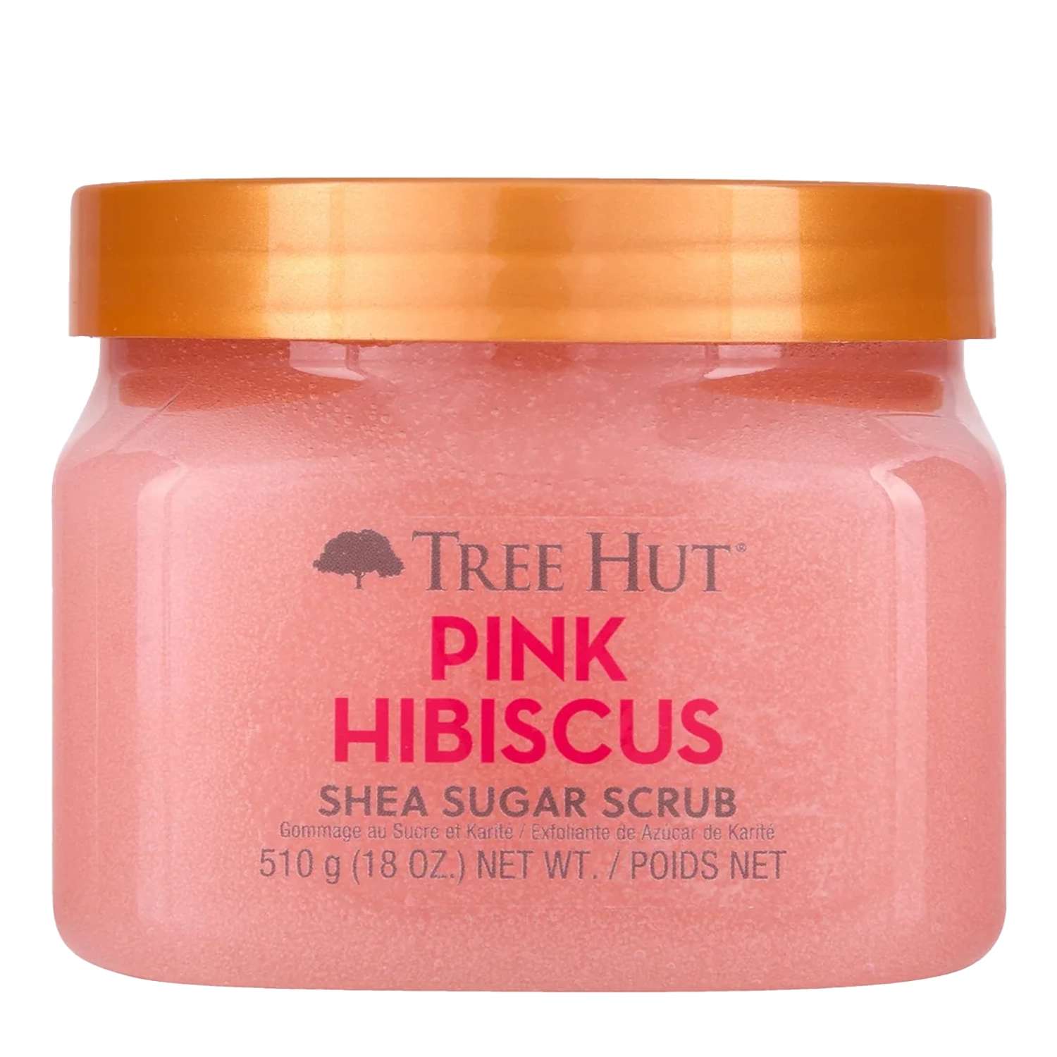 Tree Hut - Shea Sugar Scrub Pink Hibiscus - Tělový peeling s povzbuzující vůní s tóny svěžího ibišku, máku a šťavnatých malin. Hloubkově vyživuje a vyrovnává hydratace pokožku a navrací jí krásný lesk. Obsažené částečky cukru a výtažek z ibišku exfoliují odumřelou pokožku, čímž odhalují zářivou, jemnou a hladkou pokožku. Tato směs je obohacena o výživné rostlinné oleje a bambucké máslo, které společně hýčkají pokožku, dodávají jí hebkost a zanechávají tělo příjemně provoněné a revitalizované. Výrobek je vhodný pro vegany.