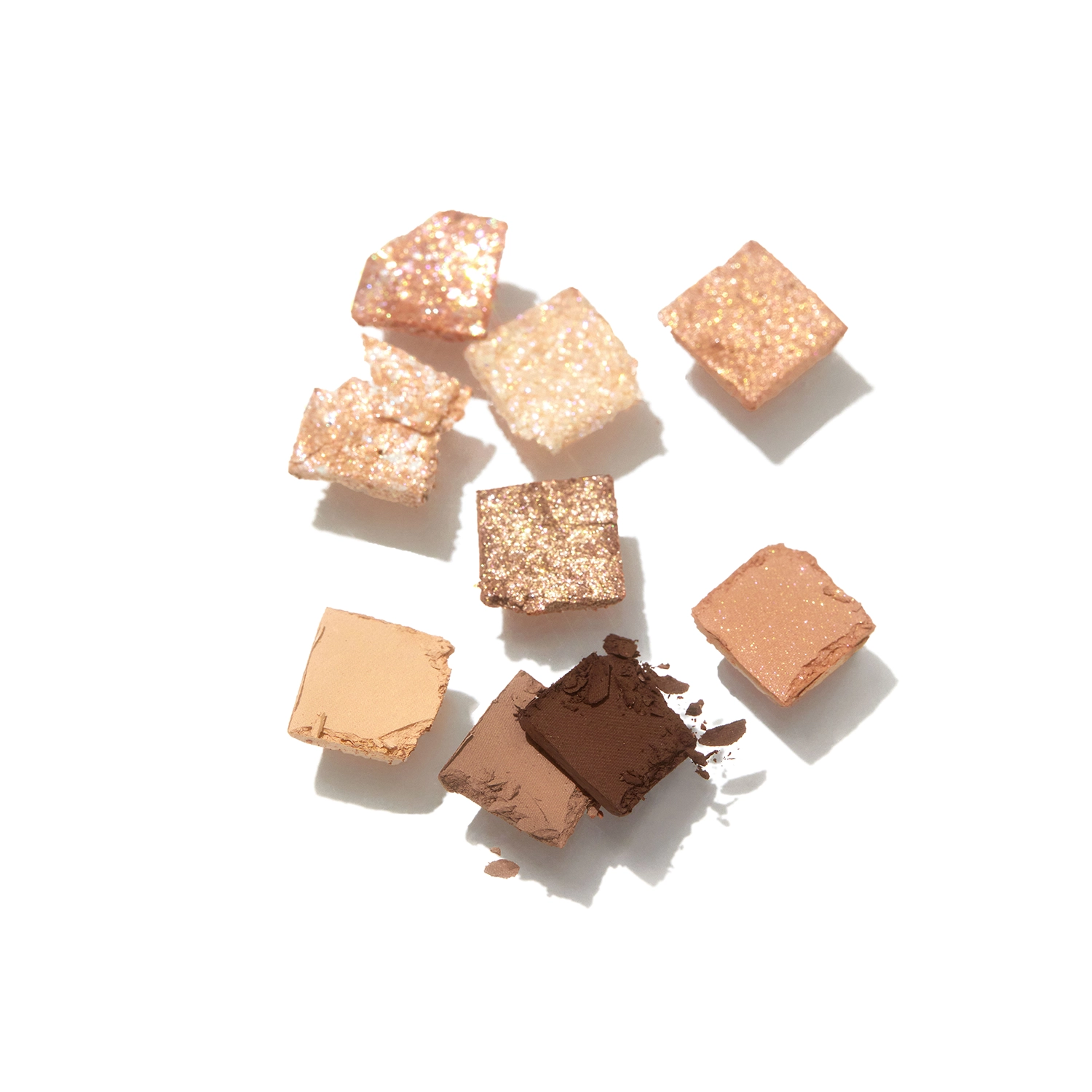 Unleashia - Glitterpedia Eye Palette - paleta 9 matných a třpytivých stínů v univerzálním, hnědo-béžovém odstínu. Umožňuje vytvořit jedinečné líčení a je vhodná pro různé tóny pleti. Stíny obsahují velké i malé třpytky, takže poskytují různé druhy finishů. Mají dlouhotrvající efekt a během dne neopadávají. Veganský produkt.