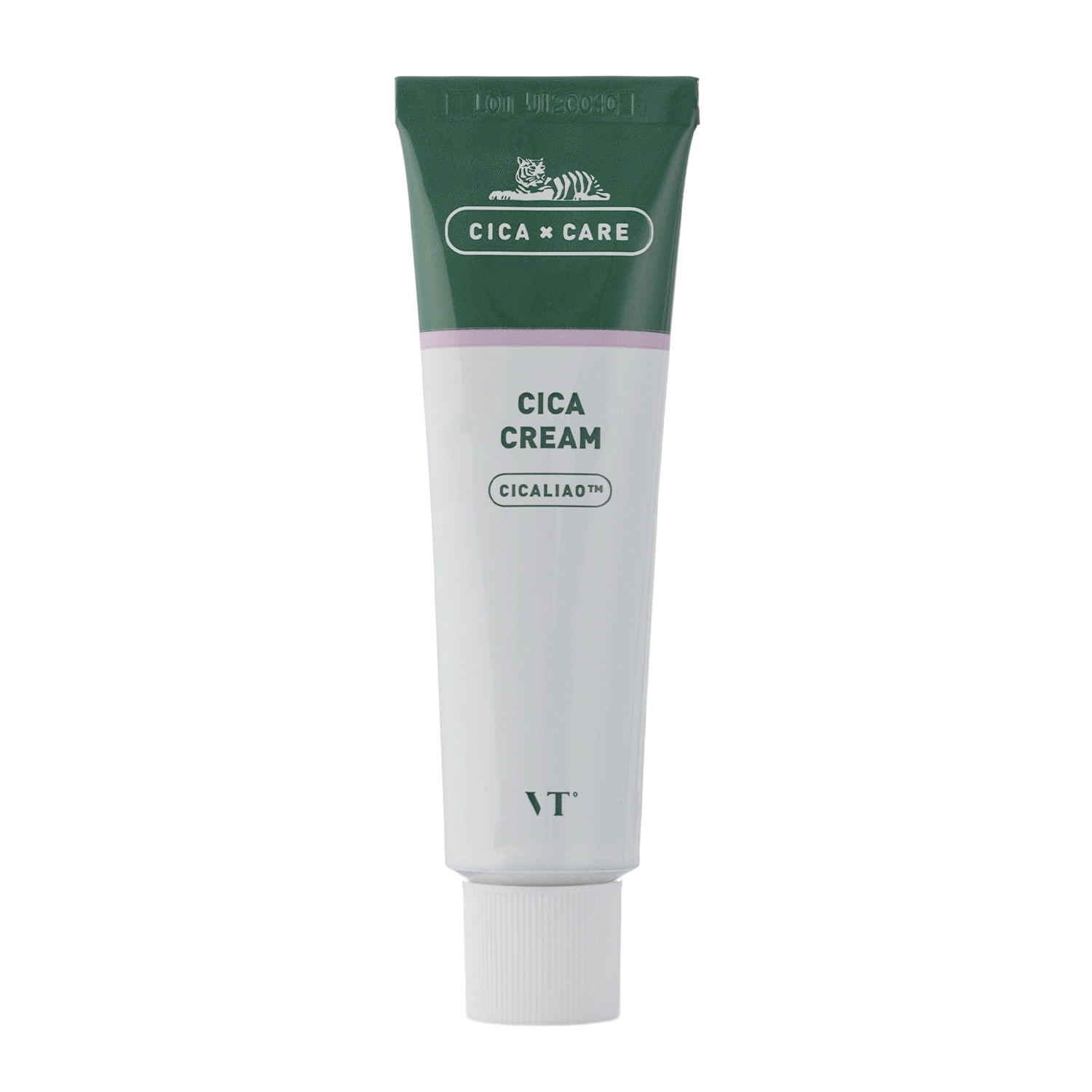 VT Cosmetics - Cica Cream - zklidňující krém pro každodenní péči o pleť s nedokonalostmi. Kosmetický přípravek má gelovou konzistenci, díky které se velmi rychle vstřebává a nezanechává na pleti lepkavou vrstvu. Výtažek z Centella asiatica obsažený v kosmetickém složení omezuje růst bakterií zodpovědných za vznik lézí akné a eliminuje škodlivé účinky volných radikálů. Přídavek ceramidu NP, tj. přirozeného mezibuněčného tmelu epidermis, posílí hydrolipidovou bariéru pokožky a zlepší její hydratační úroveň. Beta-glukan a pentanol obsažené v krému zklidní případné zarudnutí, podráždění a zánět. Komplex čtyř složek získaných z Centella Asiatica neboli Centella 4x komplex posílí ochranné funkce pokožky a urychlí regeneraci a rekonstrukci epidermis.