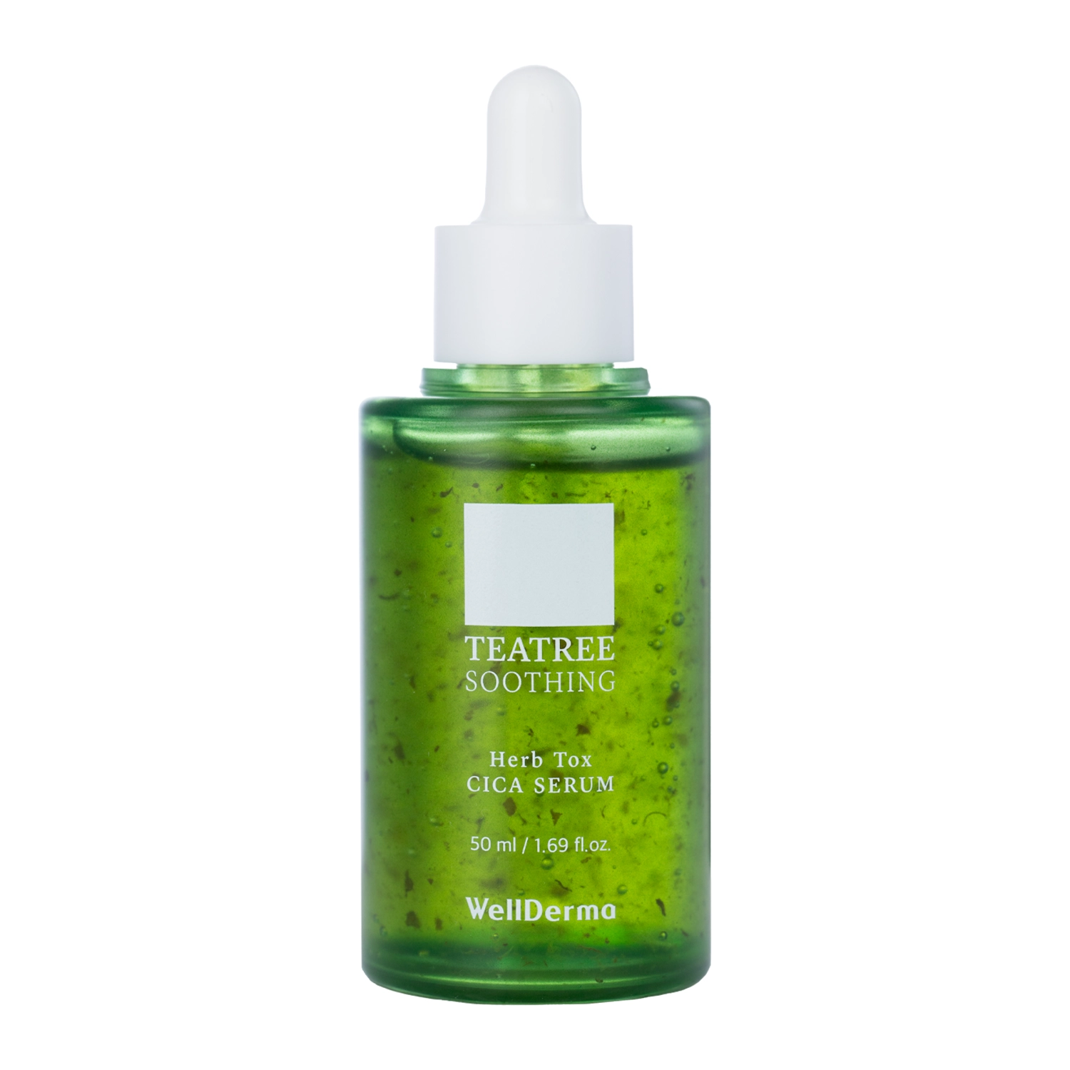 WellDerma - Herb Tox Cica Serum - sérum určené pro každodenní péči o obličej. Voda z listů Centella Asiatica, která se nachází ve složení kosmetického přípravku, zklidňuje podráždění a zmírňuje záněty, čímž přináší pleti zklidnění. Přídavek niacinamidu zase snižuje výskyt jemných vrásek na obličeji a zároveň zlepšuje tonus a pevnost pleti. Výtažek z listů zeleného čaje obsažený v séru neutralizuje škodlivé účinky volných radikálů, čímž účinně zpomaluje proces stárnutí. Kyselina hyaluronová a extrakt z pupečníku asijského, stejně jako látky z ní izolované, senavíc starají o odpovídající úroveň hydratace pleti.